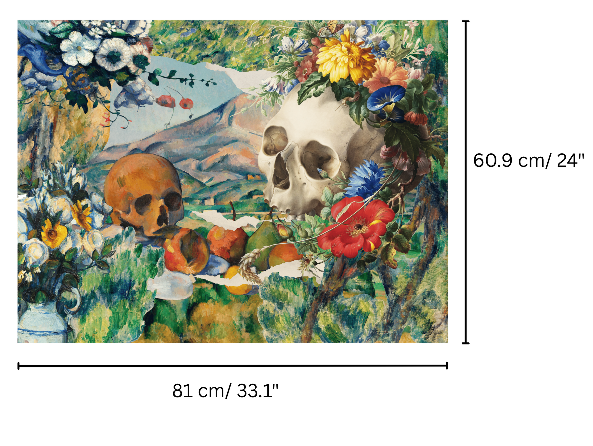 Wrap your gifts in artful style with this detailed matte wrapping paper. Featuring painterly florals, classical skulls, and rich textures, it blends beauty and mystery in a striking design. Inspired by vanitas still lifes, it adds a bold, elegant touch to any occasion.